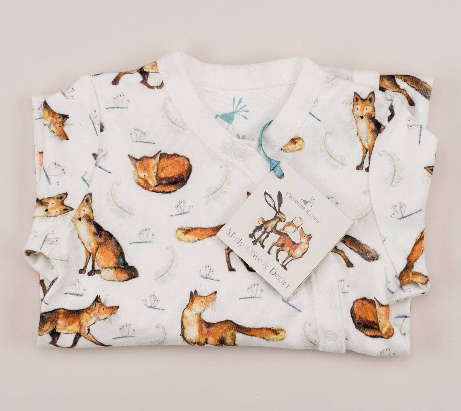 This delightful fox print baby grow features eye-catching illustrations of Dexter the handsome Fox. This unisex design is available in 2 sizes from newborn to 12 months. It is part of my first ever baby wear collection and has been lovingly designed to make the perfect gift for a new baby.