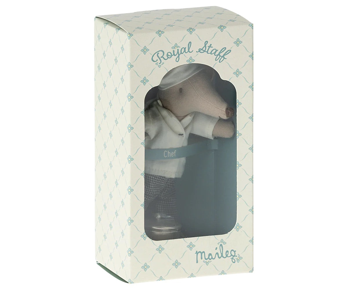 Maileg. Chef Mouse with soup pan and spoon.